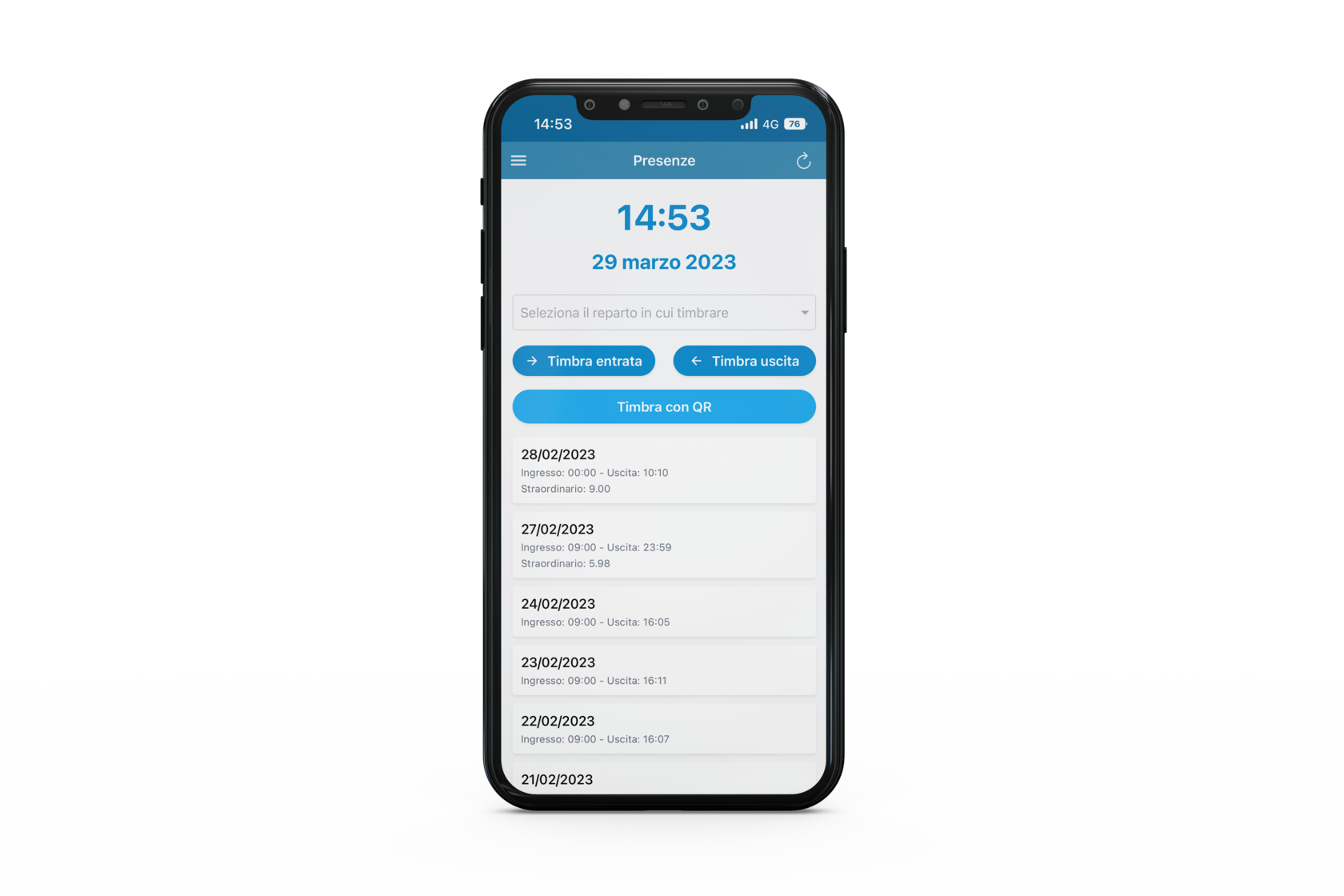 Geolocalizzazione (opzionale) dell'operatore per validare le timbrature.